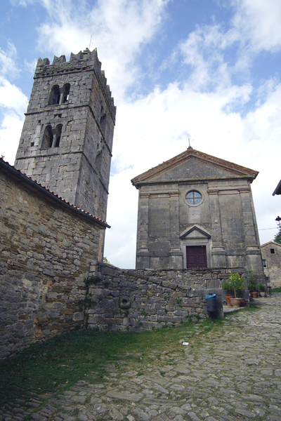 Die Stephanskirche. Die Kirche des Hl. Stefan wurde zwischen 1580 und 1614 erbaut, während sie ihre endgültige Form im 18. Jahrhundert angenommen hat. Gerade wegen ihrer erkennbaren Form wird angenommen, dass sie nach den Plänen eines berühmten venezianischen Architekten, Andrea Palladio, entworfen wurde.Der Glockenturm von Motovun. Der Glockenturm von Motovun ist das am besten erkennbaren Bauwerk am Fluss Mirna und gewissermaßen ein Symbol dieser schönen Landschaft. Er ist 27 Meter hoch und wurde im 13. Jahrhundert erbaut. Er diente als Hauptwachturm von Motovun. Zwei Stadttore in Motovun. Zwei Stadttore der Stadt sind ein gut erhaltenes und schönes Beispiel für mittelalterliche Stadtmauern. Sie sind doppelt, weil sie zwei Verteidigungsgürtel auf der Westseite der Mauer bilden. An der Außenseite befindet sich ein Lapidarium mit antiken und mittelalterlichen Inschriften und Reliefs, während das Innere wegen seiner frühgotischen Merkmale interessant ist.