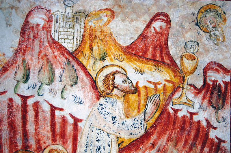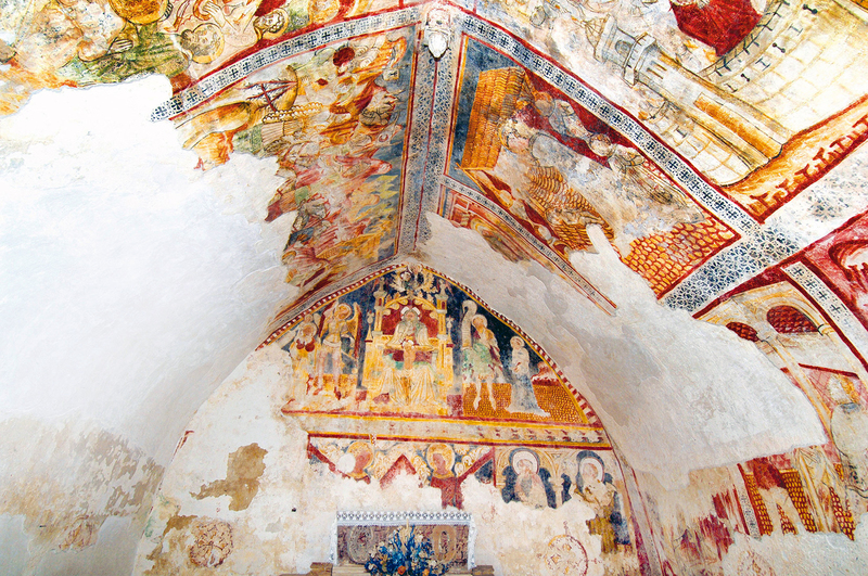 wie bereits erwähnt im 12. Jahrhundert gebaut und 1904 erneuert. Ganz besonders sehendwert sind die aus der Ursprungsbauzeit erhaltenen Fresken im Innenraum, die unter dem Einfluss der byzantinischen
