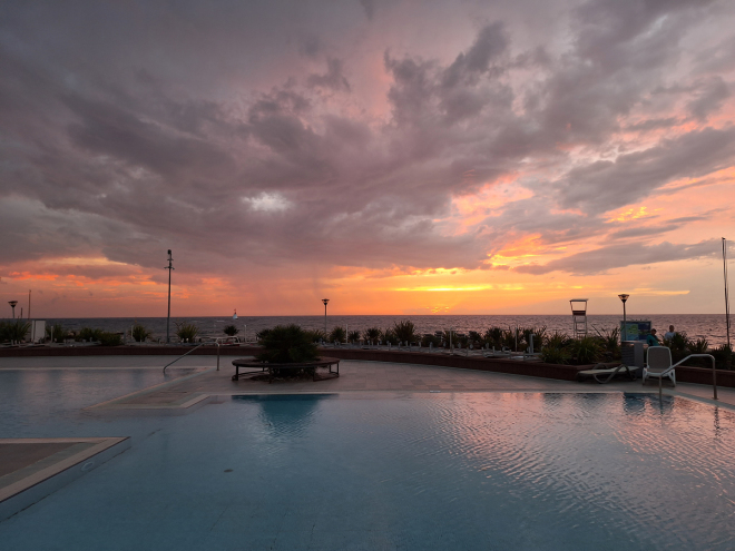Strand: Zum Strand mit teilweise sandigem Meeresgrund, Steinflächen und Liegewiesen, Sonnenschirmen und Liegestühlen (kostenlos, begrenzte Anzahl) sowie Snackbar sind es ca. 30 m.