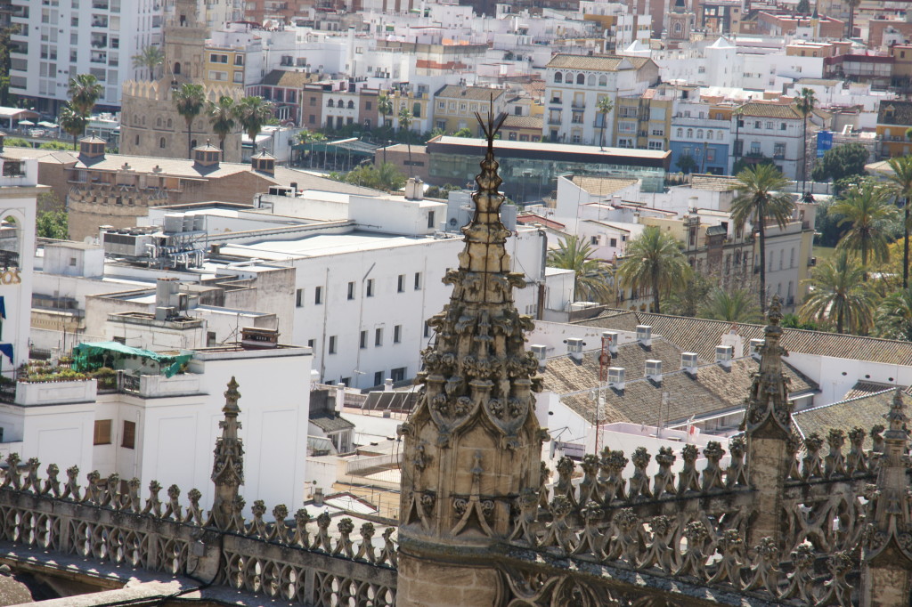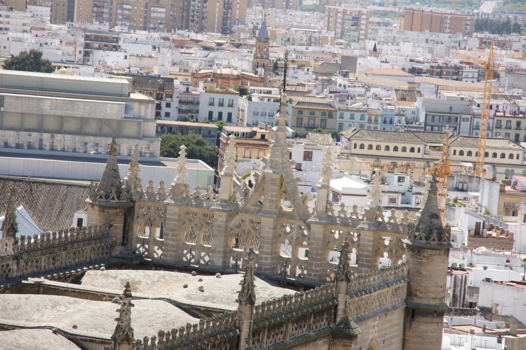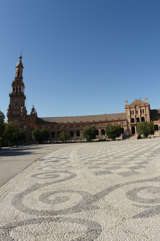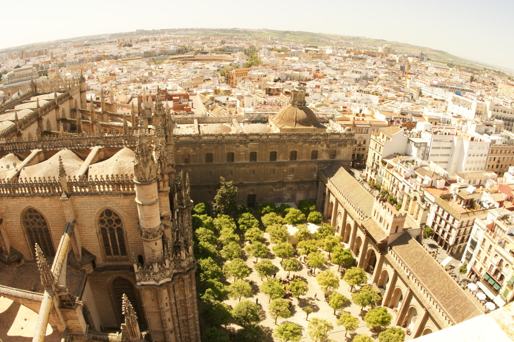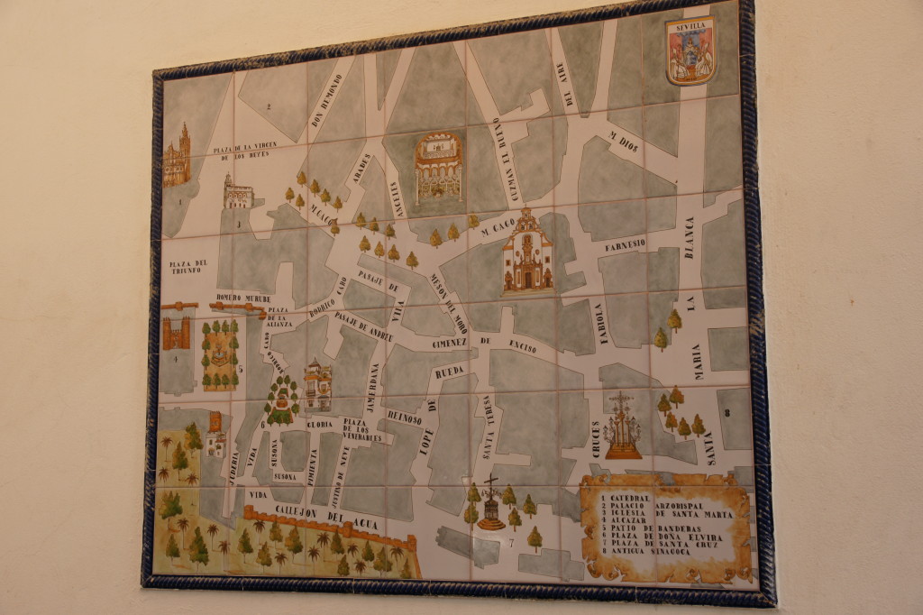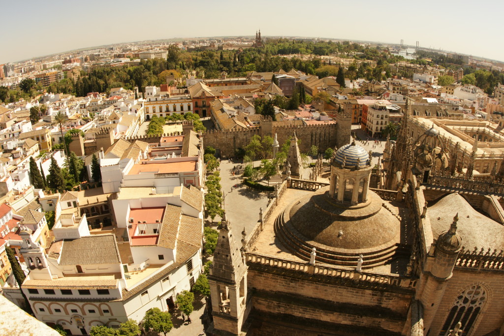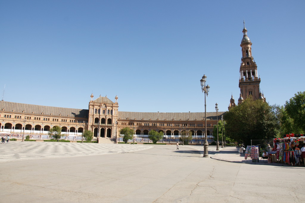 Die Stadt ist ein wichtiger Industrie- und Handelsplatz und Touristenzentrum. Sevilla liegt zu beiden Seiten des bis hierhin schiffbaren Guadalquivir, in einer weiten und fruchtbaren Ebene. Mit ihren zahlreichen Türmen bietet Sevilla von allen Seiten einen imposanten Anblick. Die eigentliche Stadt nimmt das östliche Ufer des Guadalquivir ein und ist von den Vorstädten Los Humeros, Cesteria, Baratillo, Carreteria, Resolana mit dem großen Hospital La Caridad, San Bernardo, San Roque y la Calzada und Macarena mit dem Hospital de la Sangre umgeben. Von der alten, mit 66 Türmen versehenen Ringmauer, welche die innere Stadt umgab, sind nur noch Reste vorhanden. Am rechten Ufer des Flusses breitet sich noch die große Vorstadt Triana aus.