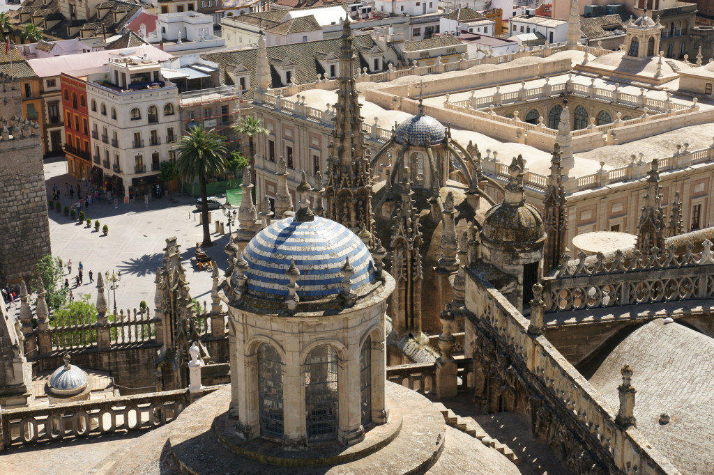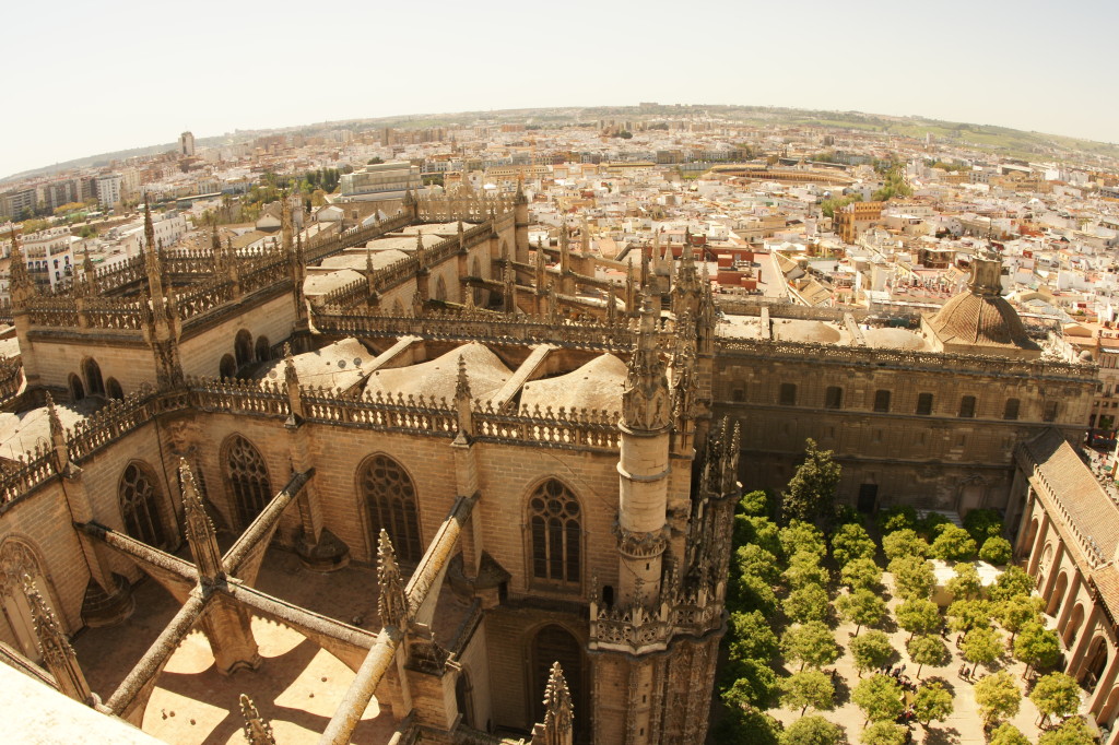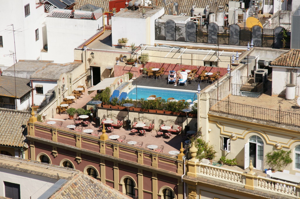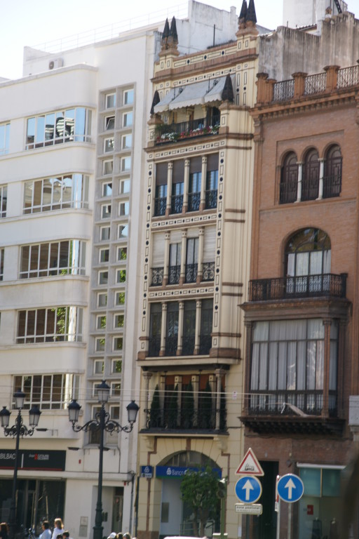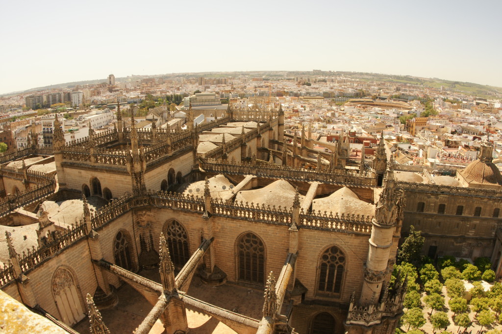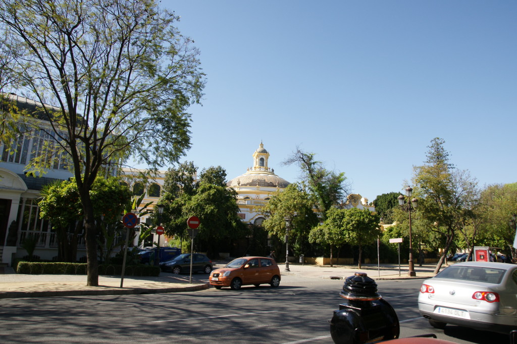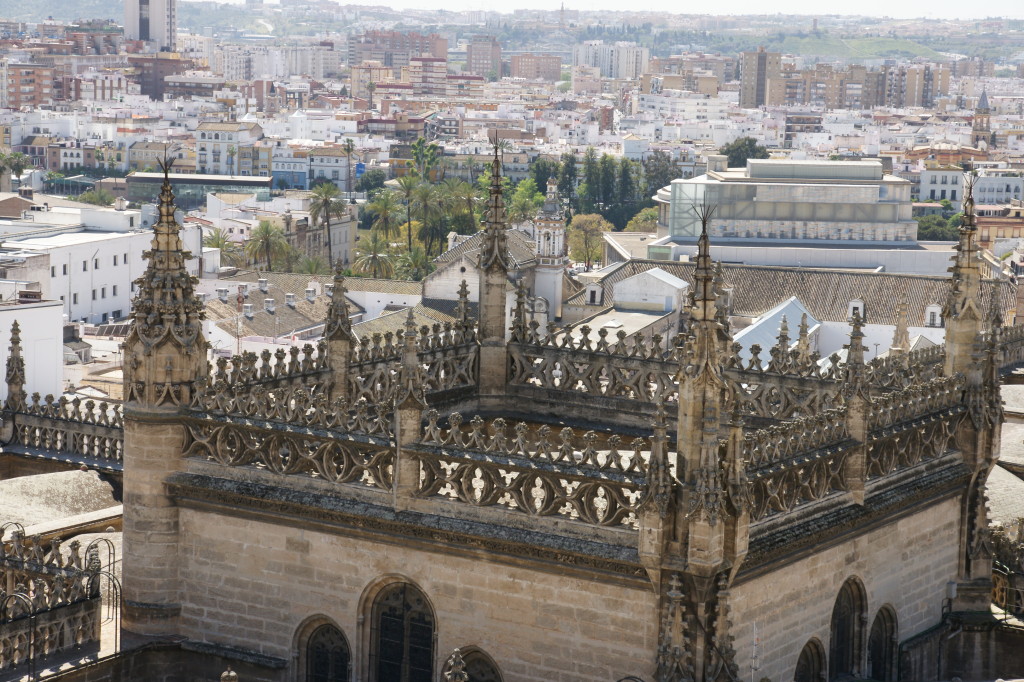 Die Stadt ist ein wichtiger Industrie- und Handelsplatz und Touristenzentrum. Sevilla liegt zu beiden Seiten des bis hierhin schiffbaren Guadalquivir, in einer weiten und fruchtbaren Ebene. Mit ihren zahlreichen Türmen bietet Sevilla von allen Seiten einen imposanten Anblick. Die eigentliche Stadt nimmt das östliche Ufer des Guadalquivir ein und ist von den Vorstädten Los Humeros, Cesteria, Baratillo, Carreteria, Resolana mit dem großen Hospital La Caridad, San Bernardo, San Roque y la Calzada und Macarena mit dem Hospital de la Sangre umgeben. Von der alten, mit 66 Türmen versehenen Ringmauer, welche die innere Stadt umgab, sind nur noch Reste vorhanden. Am rechten Ufer des Flusses breitet sich noch die große Vorstadt Triana aus.